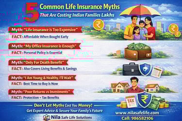 இந்தக் கட்டுரையில், ஆயுள் காப்பீடு குறித்த 5 பொதுவான தவறான நம்பிக்கைகளை விளக்கி, அதற்கான உண்மைகளை தெளிவாக எடுத்துரைக்கிறோம். இந்த விளக்கங்கள் இந்தியக் குடும்பங்கள், சம்பளதாரர்கள் மற்றும் சுயதொழில் புரிபவர்களுக்கு ஏற்ற வகையில் எளிமையாக வழங்கப்பட்டுள்ளன.